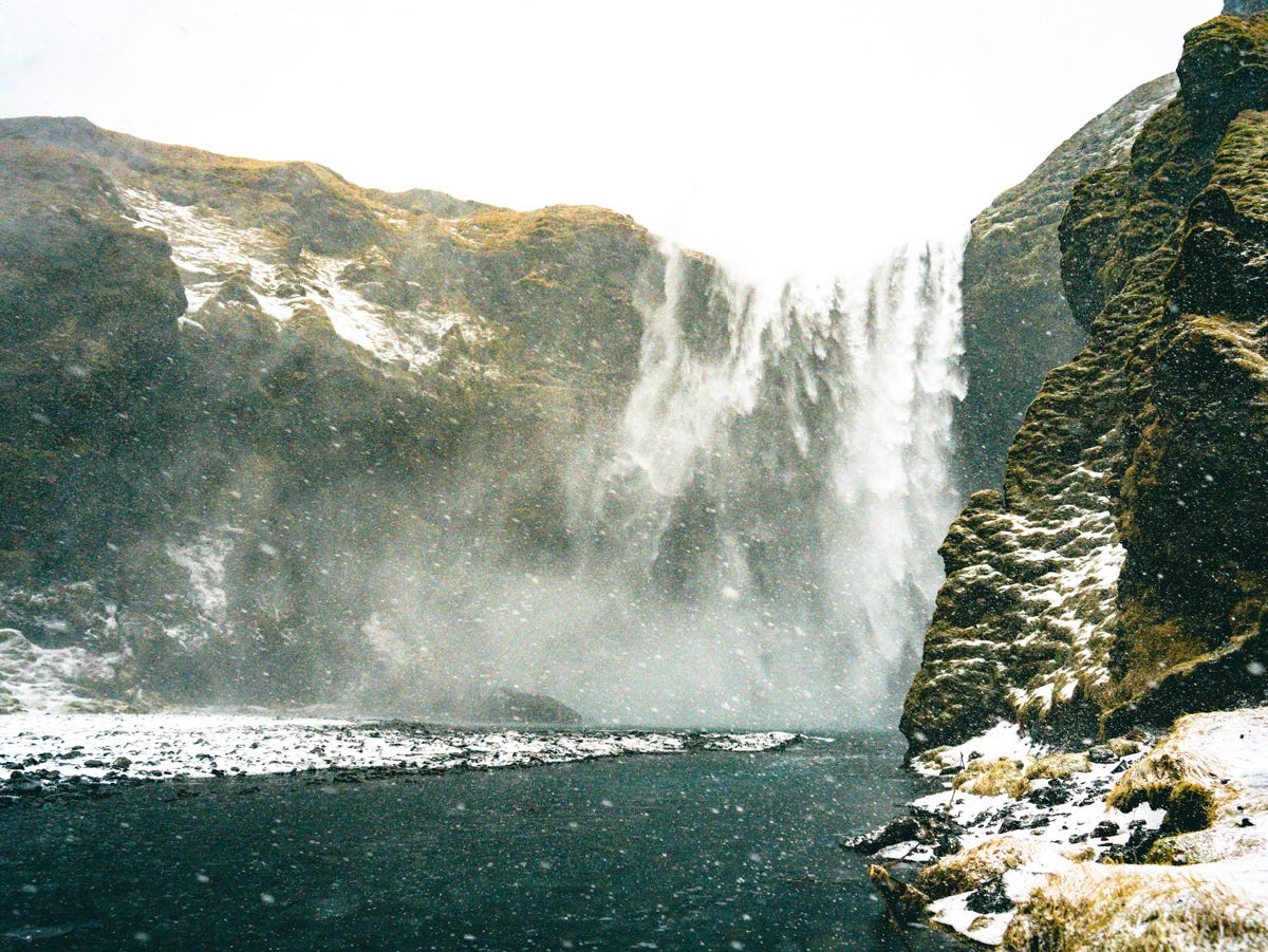 On the walk back, we stopped to get some apple pie to eat with our sandwiches before making the long drive home — but not before a quick stop at Skogafoss. It was absolutely amazing and well worth it. It was nearly impossible to get a shot without people in it, so I had to carefully traverse the rocks sticking out of the river and hope I didn’t slip. Thankfully, my feet stayed dry!